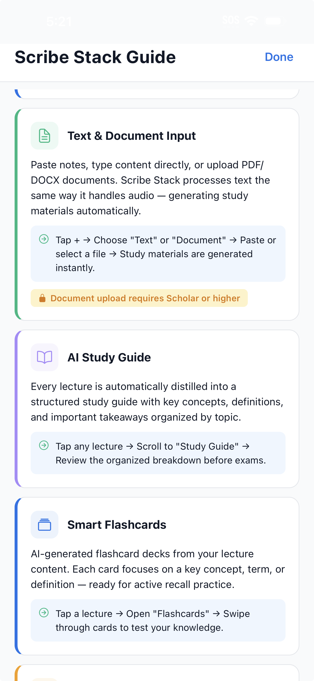 Why use Quizlet? With a single tap, Scribe Stack builds an automated flashcard deck directly from your transcription instantly.